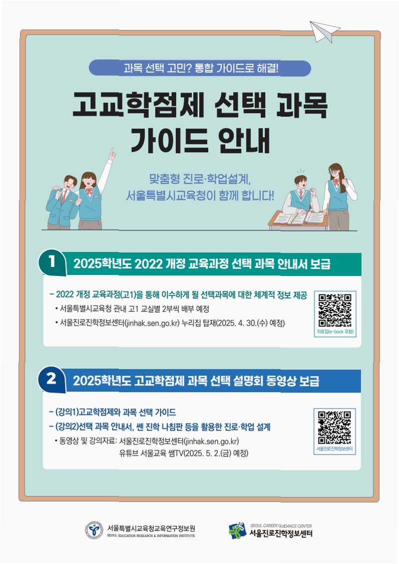 고교학점제는 학생들의 성장과 발달을 최우선으로 고려하는 교육 시스템입니다. 이 제도는 학생들이 자신의 적성과 흥미에 따라 다양한 과목을 선택하고, 정해진 학점을 이수하면 졸업할 수 있도록 설계되었습니다. 이는 단순히 수업을 듣는 것을 넘어, 학생 스스로 학습 계획을 세우고 주도적으로 학습하는 경험을 제공합니다. 고교학점제는 학생 개개인의 잠재력을 최대한 발휘할 수 있도록 돕고, 미래 사회에 필요한 역량을 키울 수 있도록 지원합니다. 학교는 학생들의 선택을 존중하고, 맞춤형 교육을 제공하기 위해 다채로운 교육 과정을 마련합니다. 이러한 변화는 학생들의 자기 주도 학습 능력을 향상시키고, 더 나아가 진로 선택에도 긍정적인 영향을 미칠 것입니다.