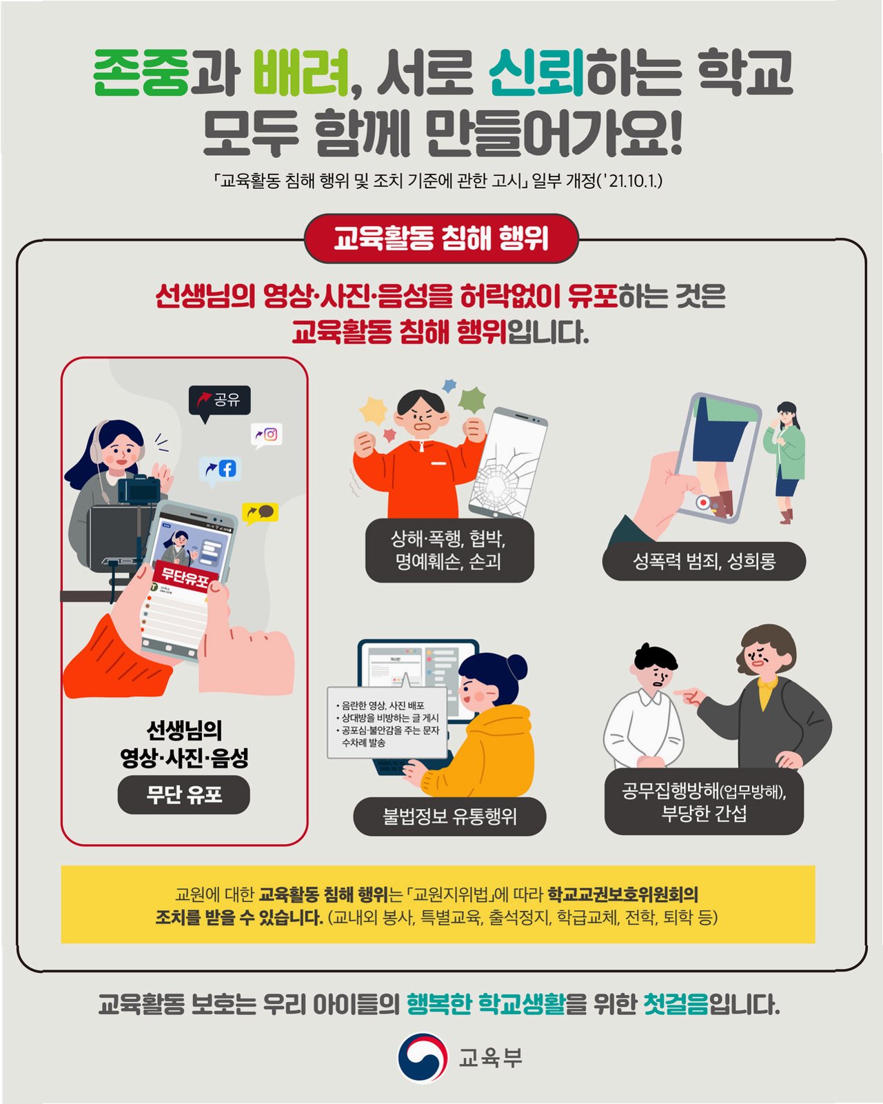 교권 침해는 교육의 질을 저하시키고, 학생들의 학습 환경에 부정적인 영향을 미칩니다. 교권 침해 예방을 위해서는 학교, 가정, 지역사회의 노력이 필요하며, 교권 침해 발생 시에는 증거 확보, 학교 보고, 법적 절차 진행 등 현명한 대처가 중요합니다. 교권 보호를 위한 학교 문화 조성을 통해, 교사의 권리를 존중하고, 건강하고 안전한 학교 환경을 만들어야 합니다.