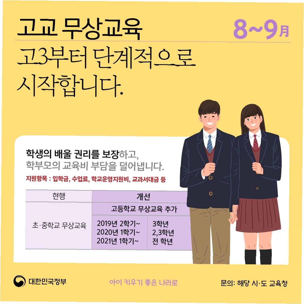 Q.무상교육은 모든 교육 단계에 적용되나요?