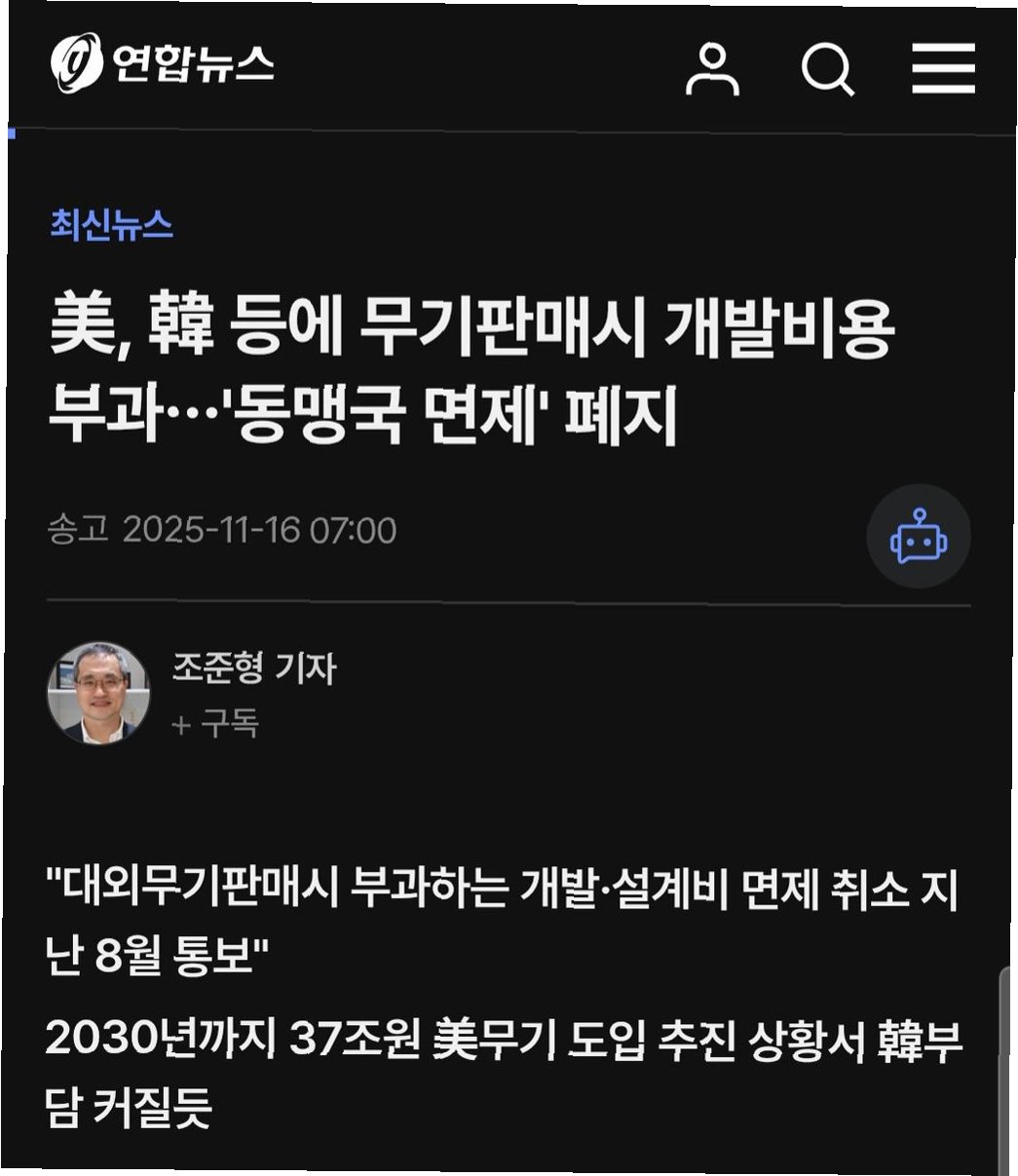지난달 29일 경주에서 열린 이재명 대통령과 트럼프 대통령 간의 한미정상회담에서 한국이 미국산 무기 250억 달러(약 37조원) 상당을 2030년까지 구매하기로 합의했다. 또 지난 14일 발표된 한미 공동 팩트시트에는 한국이 2030년까지 미국산 군사 장비 구매에 250억 달러를 지출한다는 문안이 포함됐다. 이러한 상황에서 NC 면제 폐지는 한국의 무기 도입 비용 증가로 이어질 것이다.