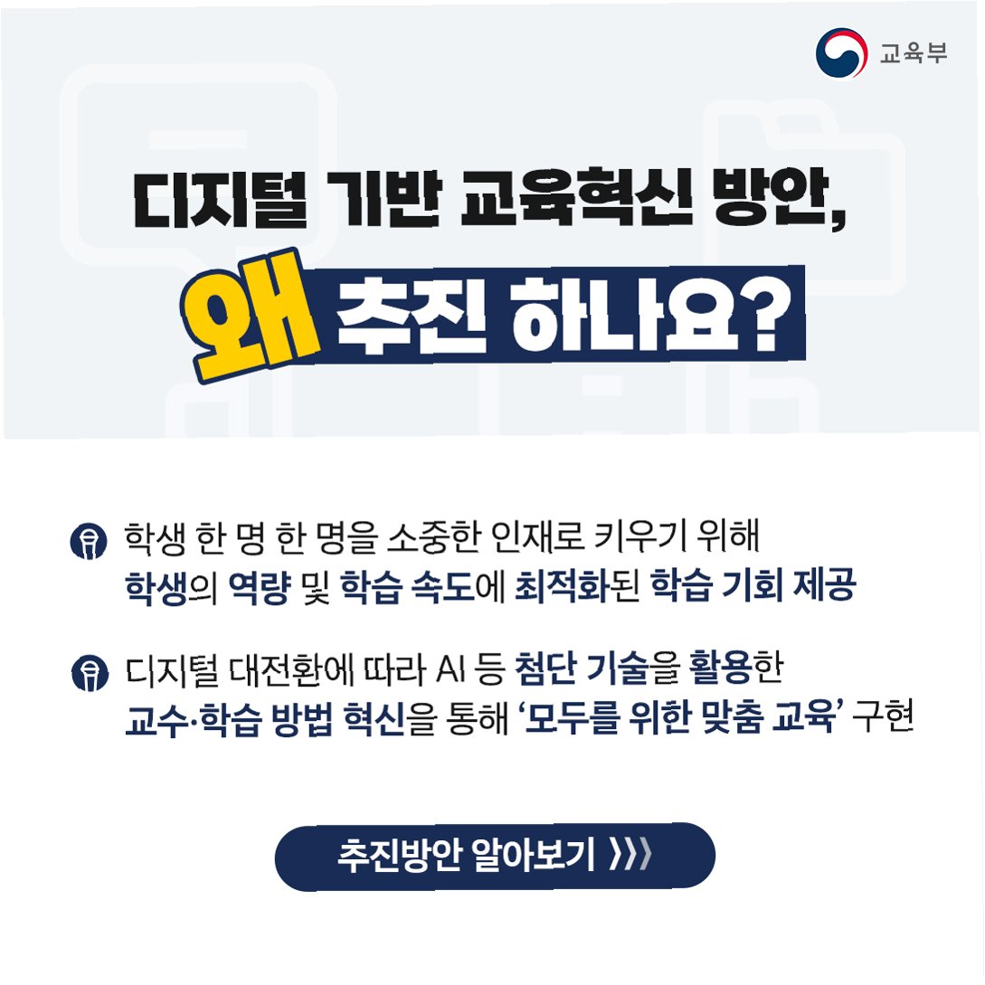 A.급변하는 시대에 맞춰 학생들의 잠재력을 최대한 발휘하고, 미래 사회에 필요한 역량을 길러주기 위해 중요합니다. 또한, 교육 불평등을 해소하고, 모두에게 공정한 기회를 제공하는 데 기여합니다.