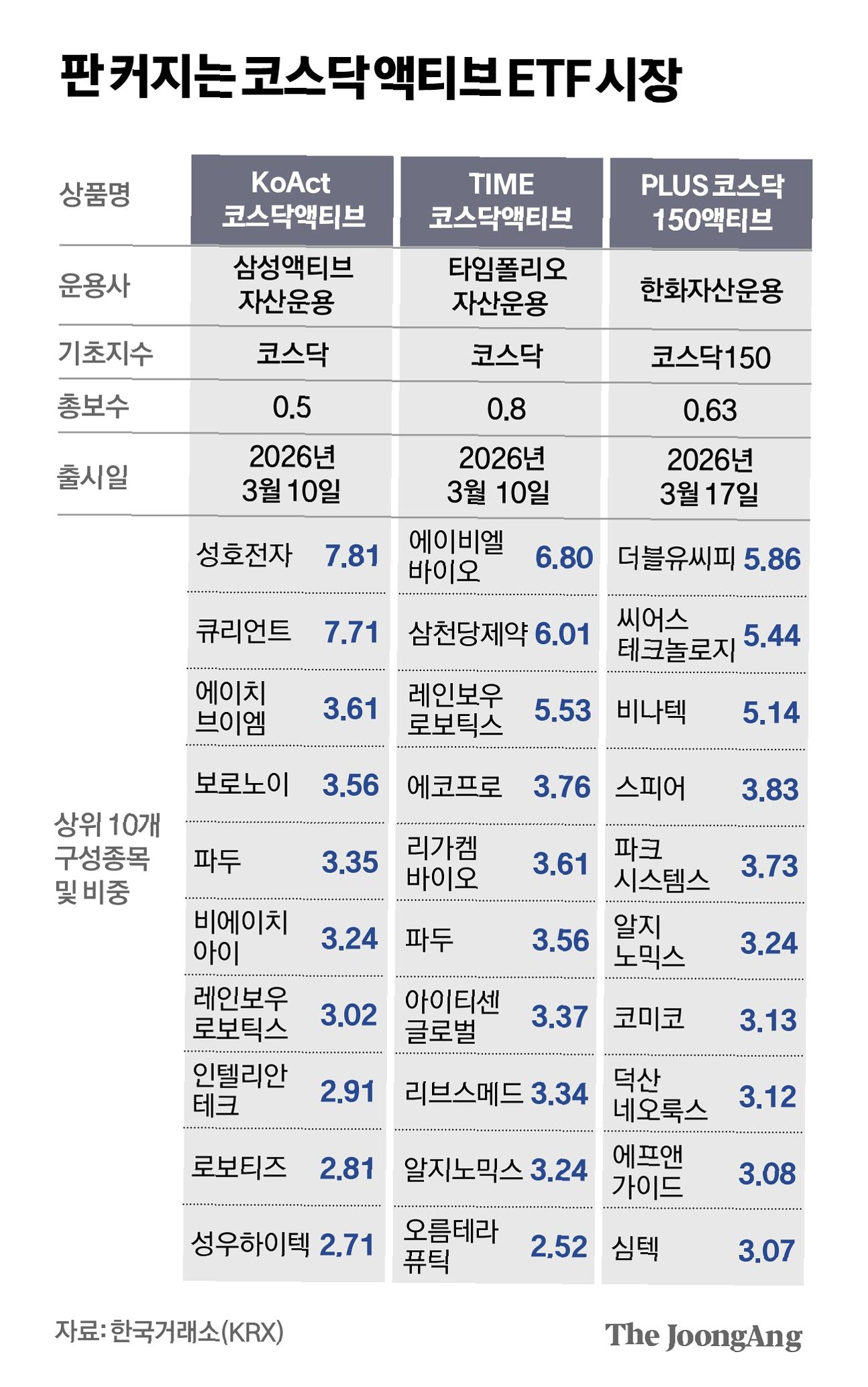 ‘삼천스닥’ 기대를 안고 인기를 끌었던 코스닥 액티브 ETF가 삼천당제약 주가 급락 사태의 직격탄을 맞았습니다. 관련 ETF들은 보유했던 삼천당제약 주식을 서둘러 정리하며 추가 손실 차단에 나섰습니다. 이 과정에서 시장 수익률을 크게 밑도는 성적을 내면서 투자자 불만도 커지고 있습니다. 주요 운용사들은 삼천당제약 비중을 사실상 0% 수준까지 낮추고 있습니다.