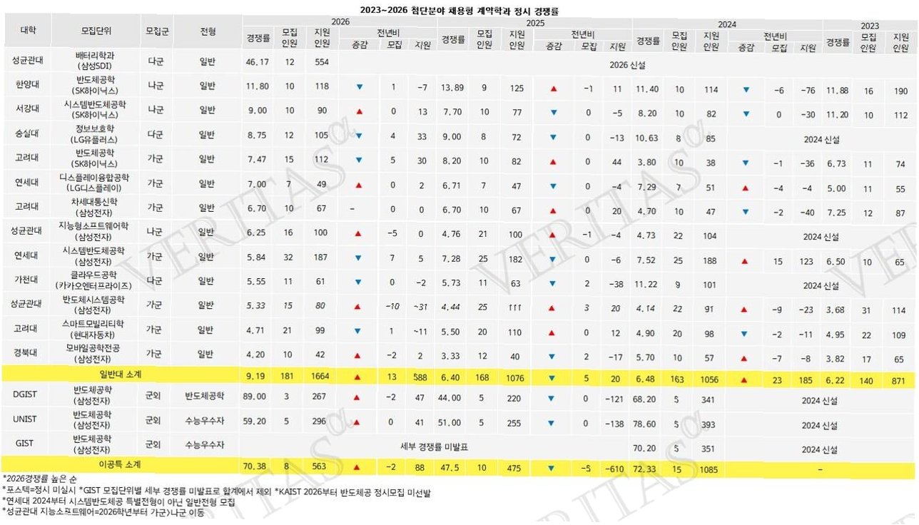 3.  수험생 선호도: 최상위권 대학 및 특정 학과에 대한 선호도가 높습니다.