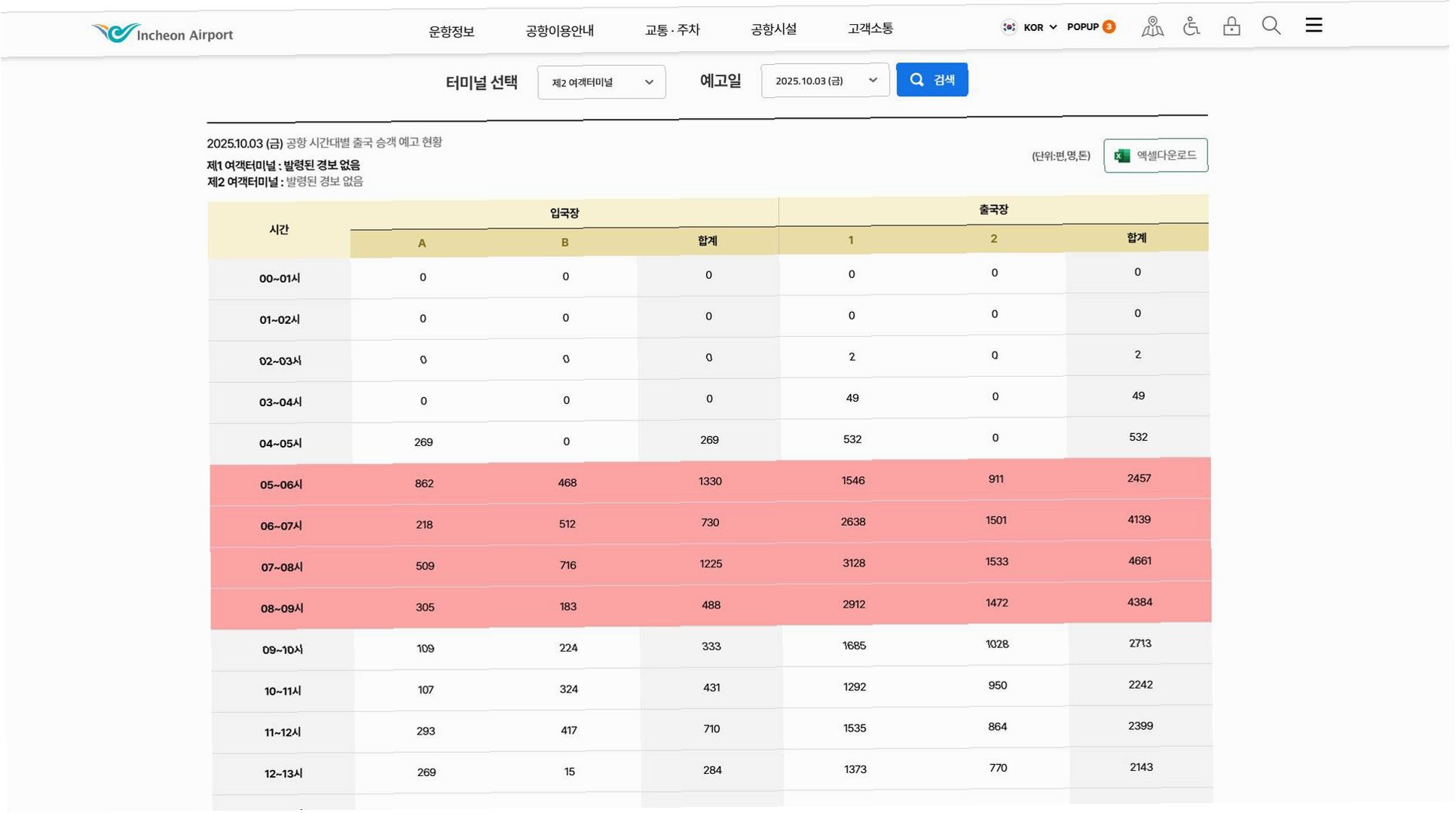 무작정 4~5시간 일찍 공항에 도착하는 것보다, 특정 시간대에 몰리는 인파를 피하는 것이 더 중요합니다. 포털에서 '인천공항 혼잡도'를 검색하거나 인천공항 가이드 앱을 활용하면 출국장별 실시간 대기 인원을 확인할 수 있습니다. 상대적으로 한산한 출국장을 선택하면 30분 이상 시간을 절약할 수 있습니다. 공사 관계자는 항공기 출발 3시간 전 도착이면 충분하다고 조언합니다.