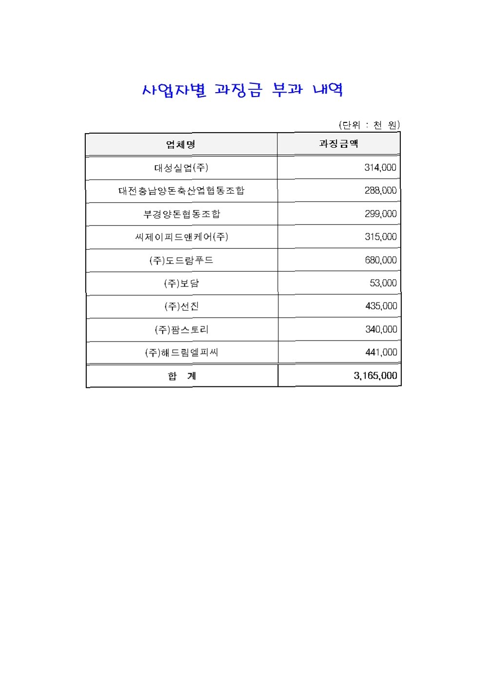 A.담합에 가담한 업체들에게 총 31억 6천500만 원의 과징금이 부과되었습니다.
