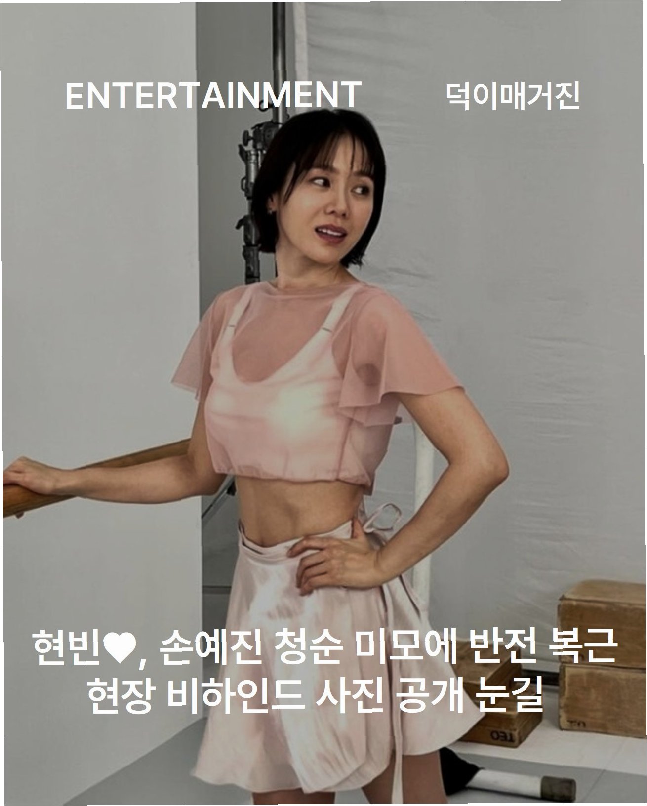 공개된 사진 속 손예진은 봄의 싱그러움을 담은 듯 화사하고 우아한 스타일링을 완벽하게 소화했습니다. 발레 스튜디오를 배경으로 한 컷에서는 은은한 핑크빛 시어 크롭톱에 미니스커트를 매치하여 스포티하면서도 여성스러운 매력을 동시에 발산했습니다. 특히 살짝 드러난 선명한 복근과 군살 하나 없는 잘록한 허리 라인은 44세라는 나이가 무색할 만큼 건강하고 탄탄한 몸매를 자랑하며 감탄을 자아냈습니다. 평소 철저한 자기 관리로 유명한 그녀답게, 자연스러운 포즈에서도 빛나는 보디라인이 시선을 사로잡았습니다.