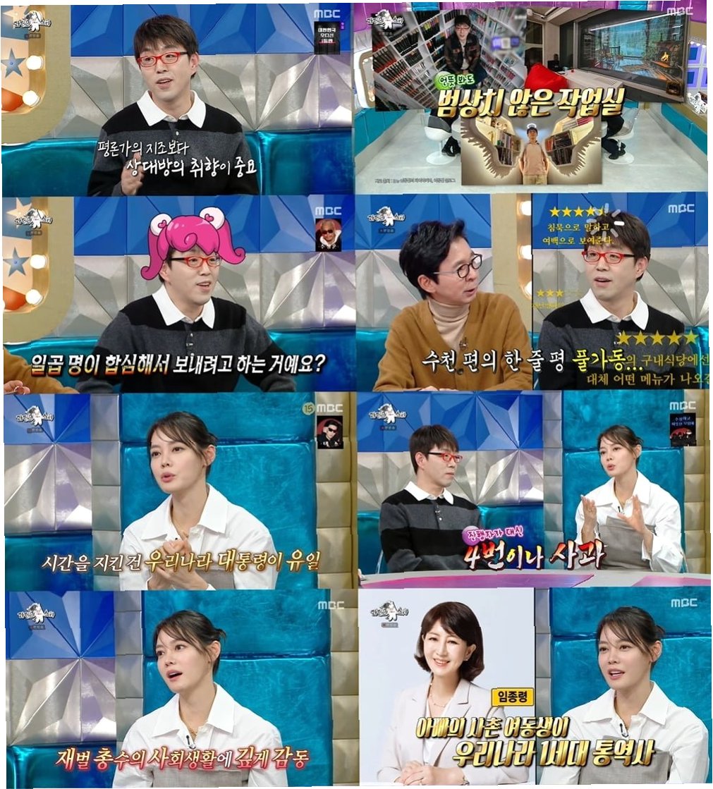 이날 방송에서는 이동진 평론가의 방대한 영화 지식과 취향을 고려한 추천 방식, 안현모의 국제 행사 진행 비하인드 스토리와 트럼프 대통령과의 일화, 젠슨 황과의 에피소드 등이 공개되어 흥미를 더했다. 궤도는 디지스트 특임교수로서의 근황과 함께 지드래곤과의 만남을 재치 있게 풀어내 웃음을 선사했다. 특히 박정민의 인기를 과학적으로 분석하는 궤도의 모습은 시청자들에게 신선한 재미를 안겼다.