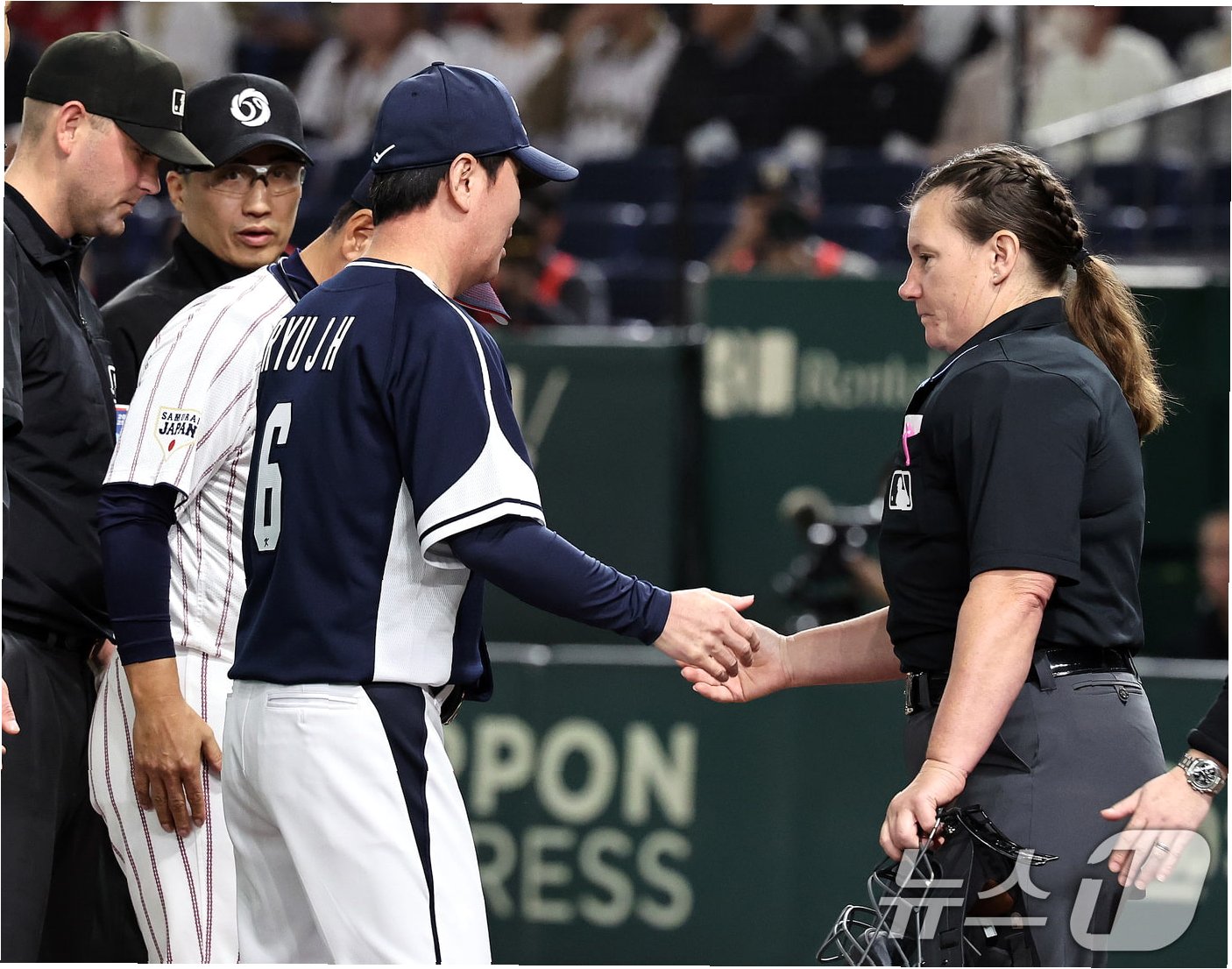 한국은 3-3 동점이던 4회말 공격에서 문현빈이 선두타자로 나왔고 문현빈은 우전 안타를 때려 출루에 성공했다. 이어진 1사 1루 상황. 최재훈이 타석에 나오자 1루주자 문현빈은 2루 도루를 시도했다. 그러자 2루심을 맡은 젠 파월 심판은 냅다 아웃을 선언했다. 이날 경기 중계의 해설위원으로 나선 오승환은 "제가 아까도 말씀드렸잖아요. 정신 차려야 한다고. 집중해야 한다고"라면서 "왜 저러는지 모르겠어요"라며 파월 심판의 신중하지 못한 판단에 분노했다.
