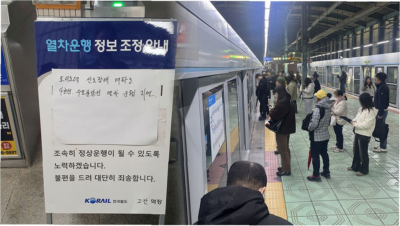 오이도역 '트롤리' 궤도 이탈, 지하철 4호선 일대 열차 지연… 출근길 발 묶인 시민들