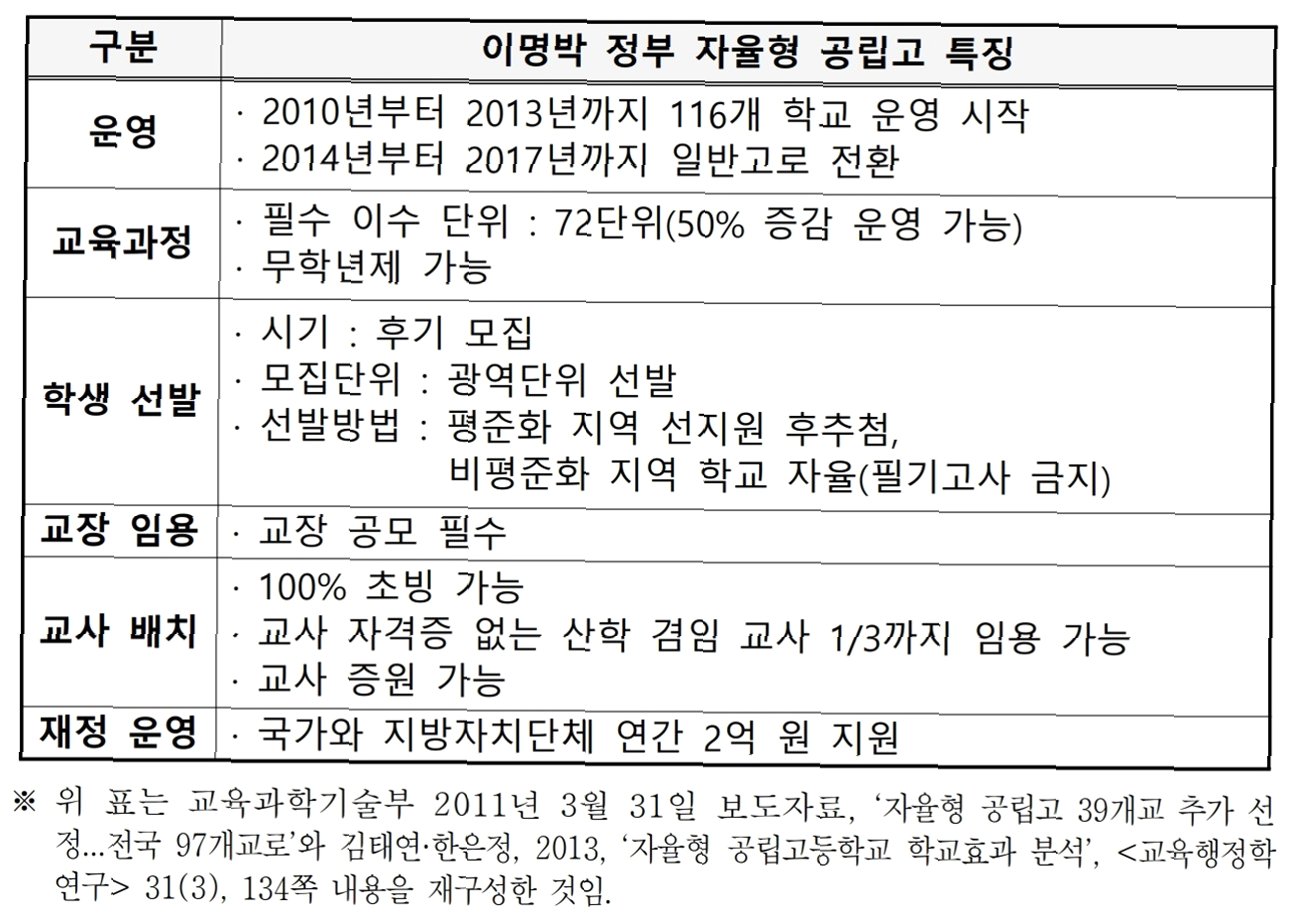 | 특징 | 일반고 | 자율형 공립고 |