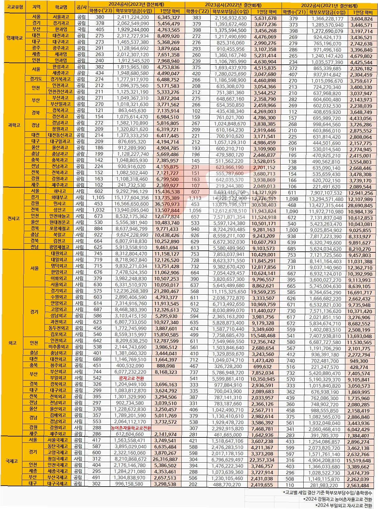 Q.자사고의 학비는 얼마나 되나요?