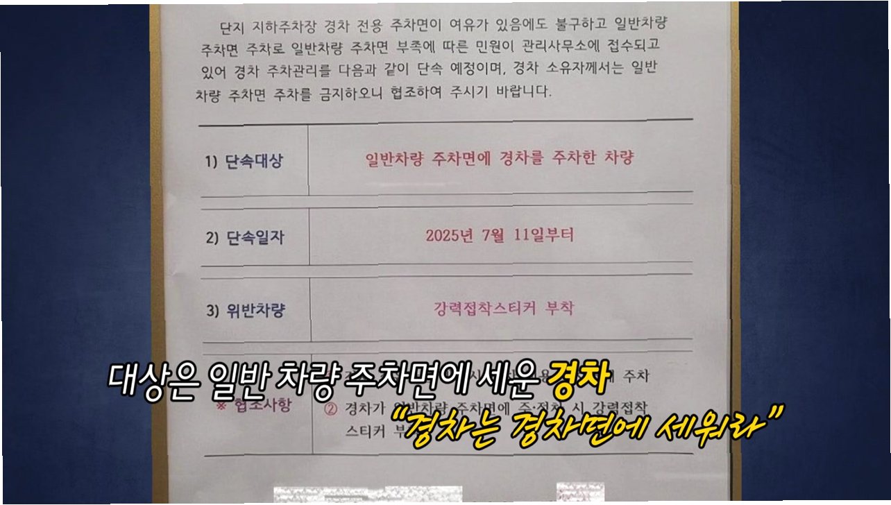 아파트 관리사무소의 안내문에는 '단지 지하주차장 내 경차 전용 주차면이 여유가 있는데도 (경차가) 일반 주차면을 사용해 일반 차량 주차 공간 부족 민원이 발생하고 있다'는 내용이 담겨 있습니다. 이로 인해 경차의 일반 주차면 사용을 단속하고, 위반 시 강력 접착식 스티커를 부착하겠다는 방침을 밝혔습니다. 하지만 이러한 조치는 법적 근거가 부족하다는 지적과 함께, 경차 소유주들의 불만을 더욱 키우는 결과를 낳았습니다. 자신을 현직 아파트 관리사무소장이라고 밝힌 한 누리꾼은 '법적으로 경차가 일반 주차칸에 주차하는 것을 막을 근거는 없다'며 관리 조약의 효력에도 의문을 제기했습니다. 이러한 강경 대응은 주차 공간 부족이라는 근본적인 문제 해결보다는 갈등을 심화시키는 결과를 초래할 수 있다는 점에서 비판받고 있습니다.