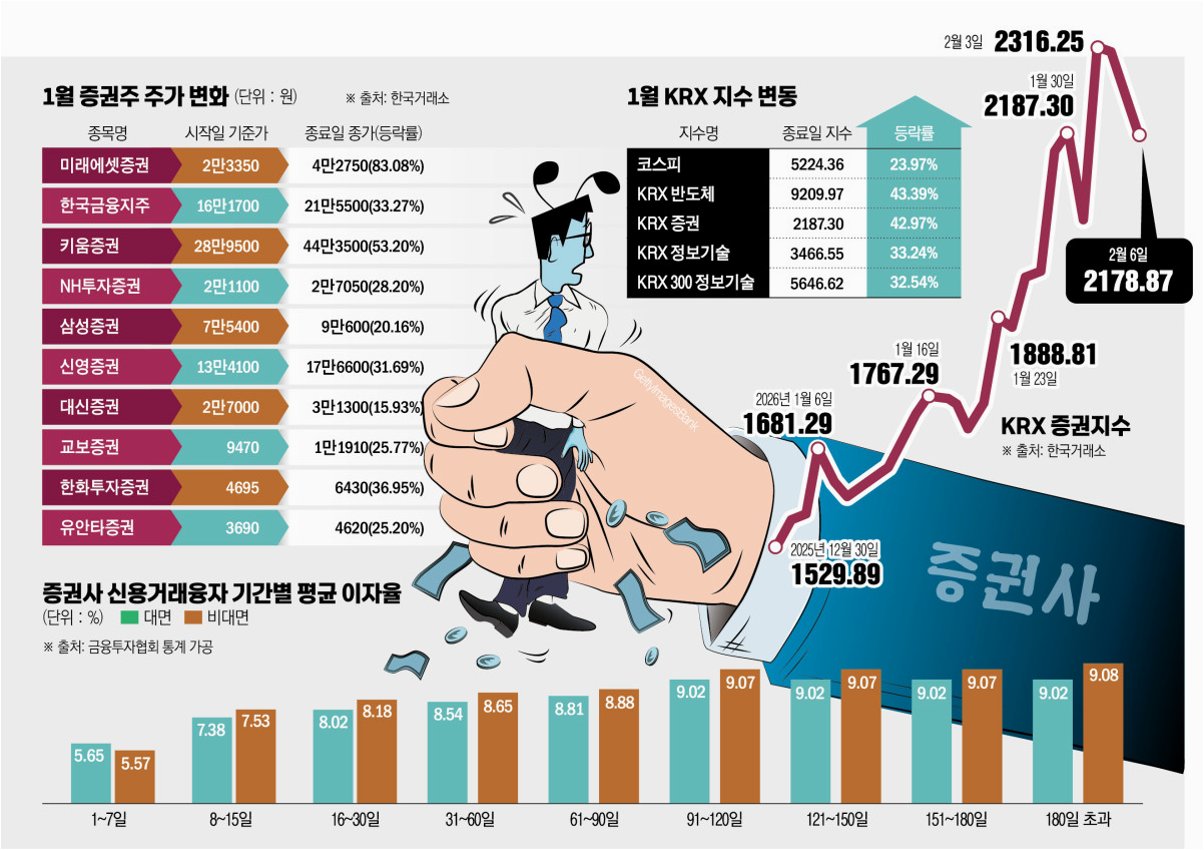 코스피 지수 상승의 주역은 삼성전자와 SK하이닉스였지만, 그 뒤를 이어 증권주들이 정부 정책과 증시 활황에 힘입어 눈부신 성과를 거두고 있습니다. 미래에셋증권을 필두로 한 증권주들의 높은 상승률과 주요 증권사들의 '1조 클럽' 가입은 이러한 흐름을 증명합니다. 거래대금 증가에 대한 기대감으로 설 연휴 이후에도 증권주 강세는 이어질 전망입니다.