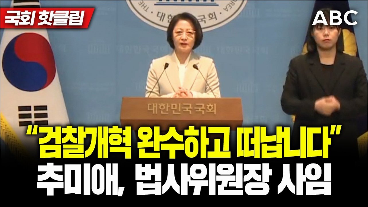 6월 지방선거에서 경기지사 출마를 선언한 추미애 국회 법사위원장이 법사위원장직 사임을 밝혔습니다. 추 위원장은 기자회견을 통해 "마지막 소임이었던 검찰개혁 법안이 본회의를 통과했기에 국민께 법사위원장 직을 돌려드린다"고 말했습니다. 지난 7개월간 총 682건의 개혁 및 민생법안 처리를 성과로 꼽으며, "어떠한 가시밭길도 외면하지 않았다"고 강조했습니다. 이는 2021년 검찰개혁 완수를 못한 채 법무부 장관직을 떠났던 때와 달리, 뜻깊은 결과를 보고드릴 수 있어 영광이라고 덧붙였습니다.