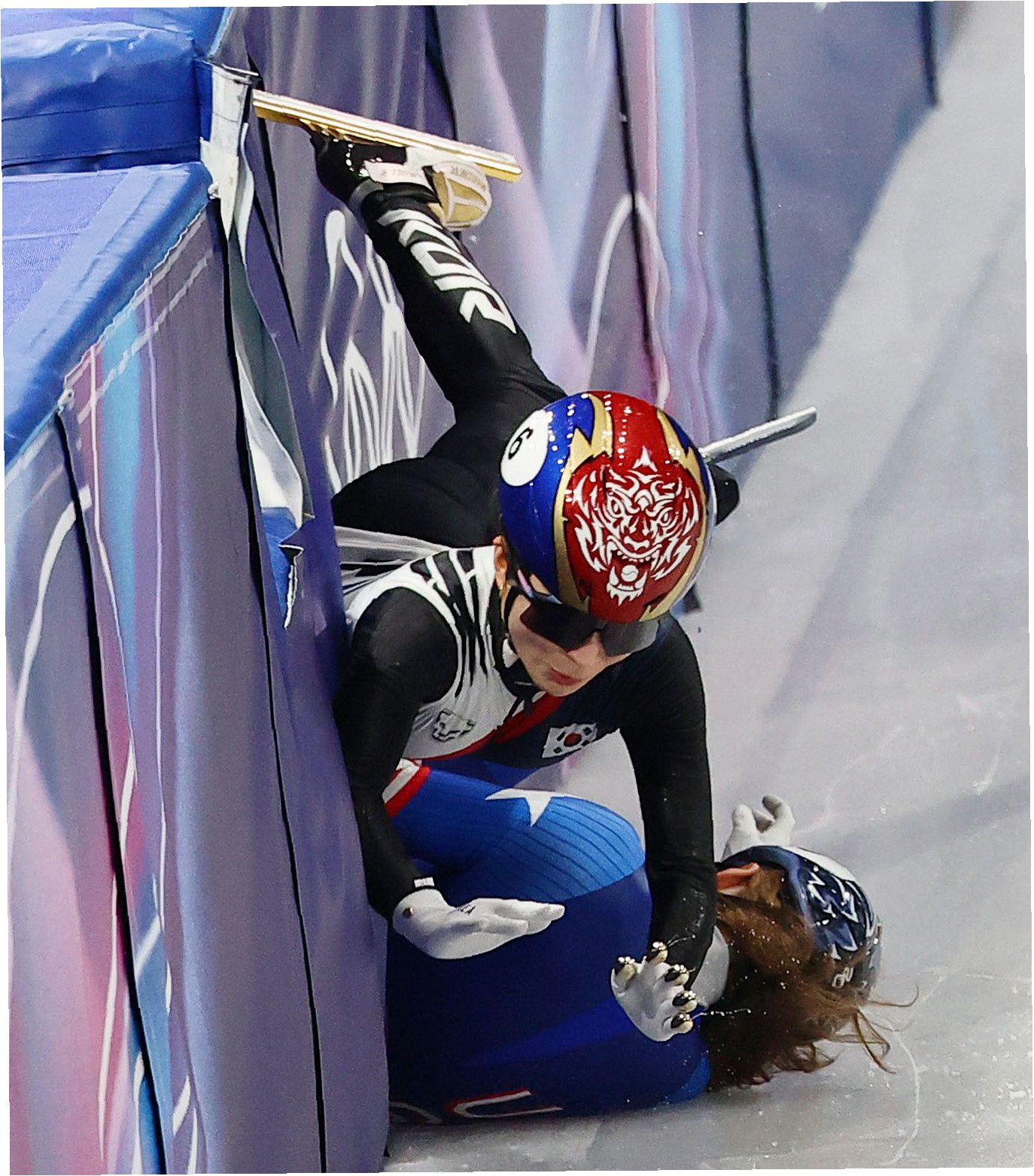 사고는 12번째 바퀴에서 선두를 달리던 스토더드 선수가 넘어지면서 발생했습니다. 뒤따르던 김길리 선수가 피하지 못하고 충돌했고, 두 선수 모두 넘어졌습니다. 심판진은 미국에 페널티를 부여하지 않았고, 한국 팀은 결승 진출에 필요한 순위를 확보하지 못했습니다. 김길리 선수는 펜스에 강하게 부딪혀 부상을 입었습니다. 스토더드 선수는 이전 경기에서도 넘어진 적이 있었으나, 고의적인 행동으로 보기는 어렵다는 분석도 있습니다. 피겨스케이팅과 같은 경기장을 사용하며 얼음 상태가 좋지 않았다는 지적도 제기되었습니다.