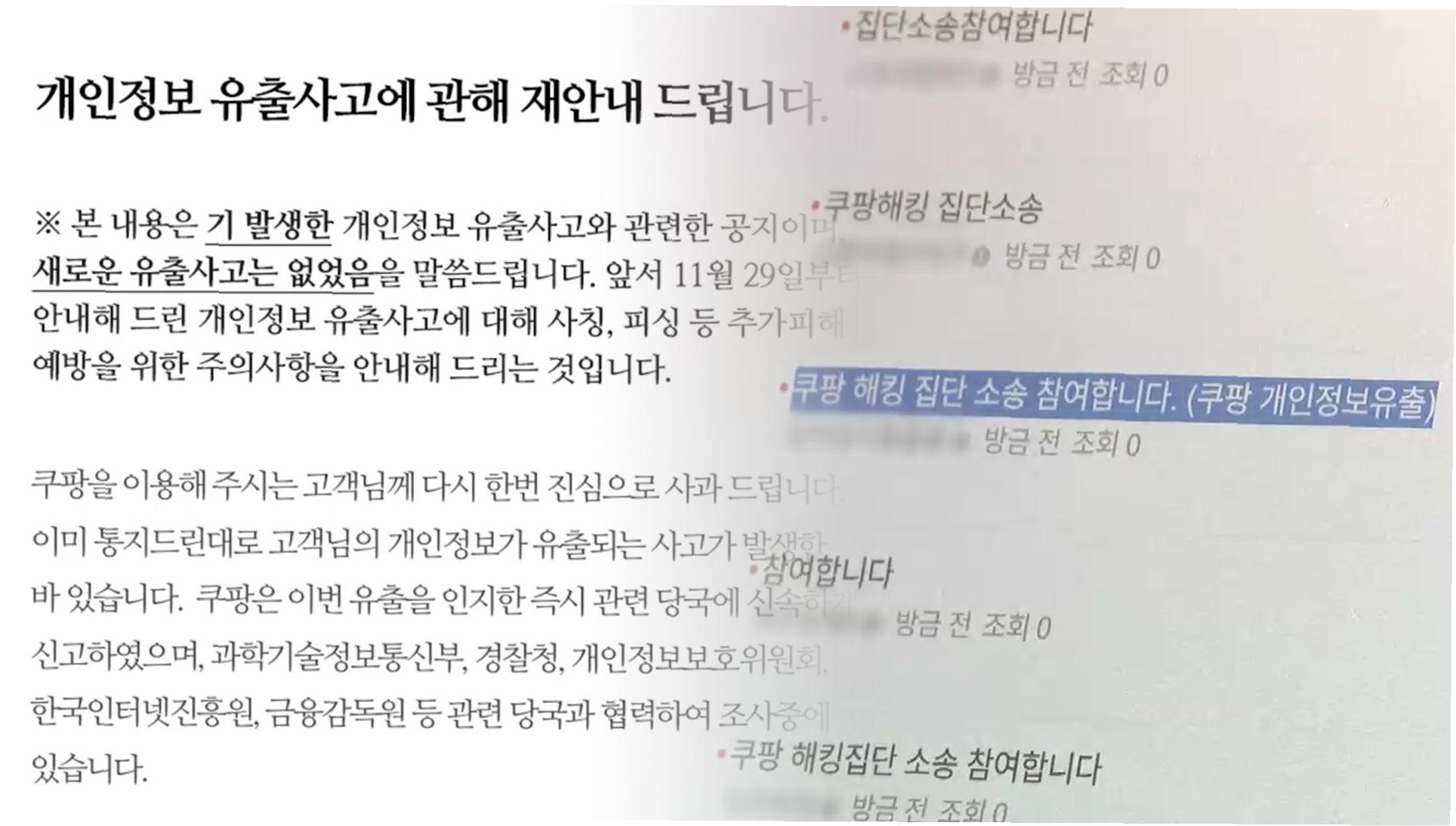 한국소비자단체협의회는 “소비 촉진형 이용권 지급은 개인정보 침해에 대한 실질적 배상으로 보기 어렵다”며 “추가 구매나 재가입을 유도하는 마케팅에 가깝다”고 밝혔습니다. 온라인 커뮤니티와 사회관계망서비스(SNS)에서는 보상안을 거부하고 집단소송에 참여하겠다는 소비자들의 글이 잇따르고 있습니다. 일부 소비자들은 “쿠폰 형태의 보상은 피해 회복으로 보기 어렵다”며 민사 소송을 통한 손해배상을 검토하고 있다고 밝히고 있습니다.