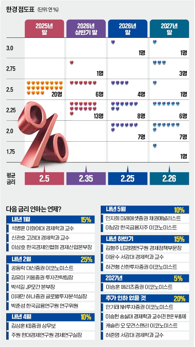 금리 인하 사이클이 조만간 막을 내릴 수 있다는 신호가 감지되었습니다. 금통위는 ‘금리 인하 기조’를 ‘금리 인하 가능성’으로, ‘추가 인하 시기 및 속도’를 ‘추가 인하 여부 및 시기’로 변경했습니다. 이는 금리 인하에 대한 유연성을 열어두면서도, 추가 인하의 가능성을 축소하는 방향으로 정책 기조가 변화하고 있음을 시사합니다. 이창용 총재는 당분간 기준금리 추가 인하 가능성과 동결 가능성을 모두 열어둘 필요가 있다고 언급했습니다.