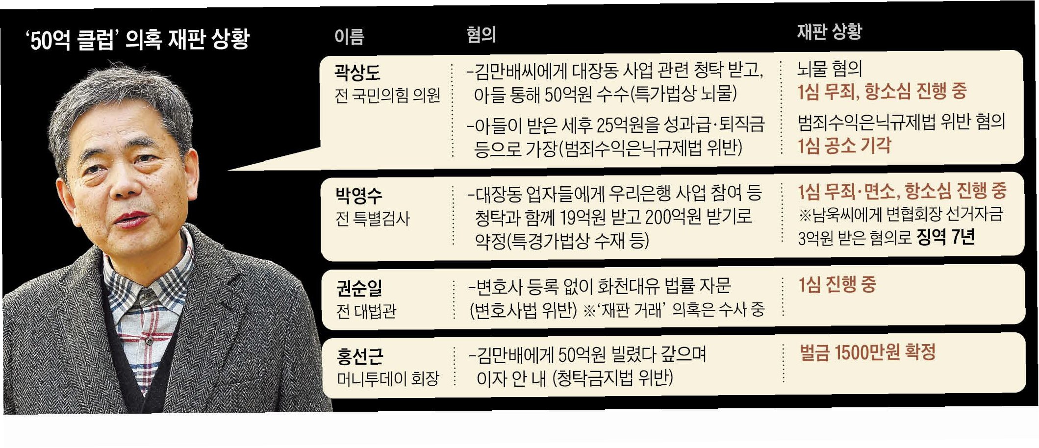 곽상도 전 국민의힘 의원의 아들이 50억 원의 뇌물을 받은 혐의로 1심 재판에서 무죄를 선고받자, 온라인 커뮤니티를 중심으로 거센 비판이 일고 있습니다. '이제 뇌물은 퇴직금으로 주세요', '남미식 마피아 나라'와 같은 반응이 쏟아지며 '유전무죄, 무전유죄' 논란이 재점화되었습니다. 곽 씨는 아버지의 권유로 화천대유에 입사해 6년간 근무 후 퇴직금 명목으로 50억 원을 수령하여 큰 논란을 빚었습니다.