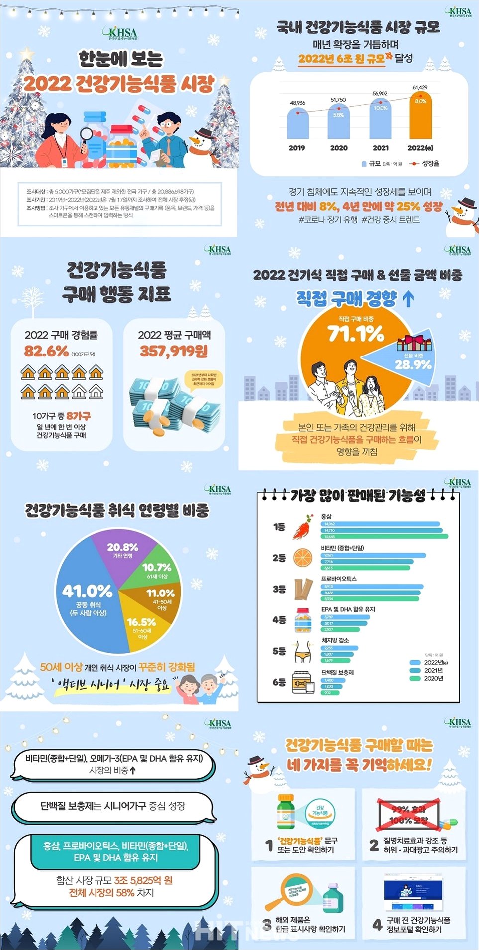 가장 뚜렷한 변화는 홍삼의 급격한 하락세입니다. 2021년 건기식 전체 구매액의 25.9%를 차지했던 홍삼은 올해 16%까지 낮아졌습니다. 같은 기간 구매액은 1조4710억원에서 9536억원으로, 약 5000억원이 증발했습니다. 반면 종합비타민·단일비타민은 합산 비중이 13.6%(7176억원)에서 올해 18.1%(1조779억원)로 확대되며 홍삼이 잃은 자리를 빠르게 채웠습니다. 소비자의 선택이 ‘전통적 종합 해결제’에서 ‘기능별 맞춤형’으로 이동한 것입니다.