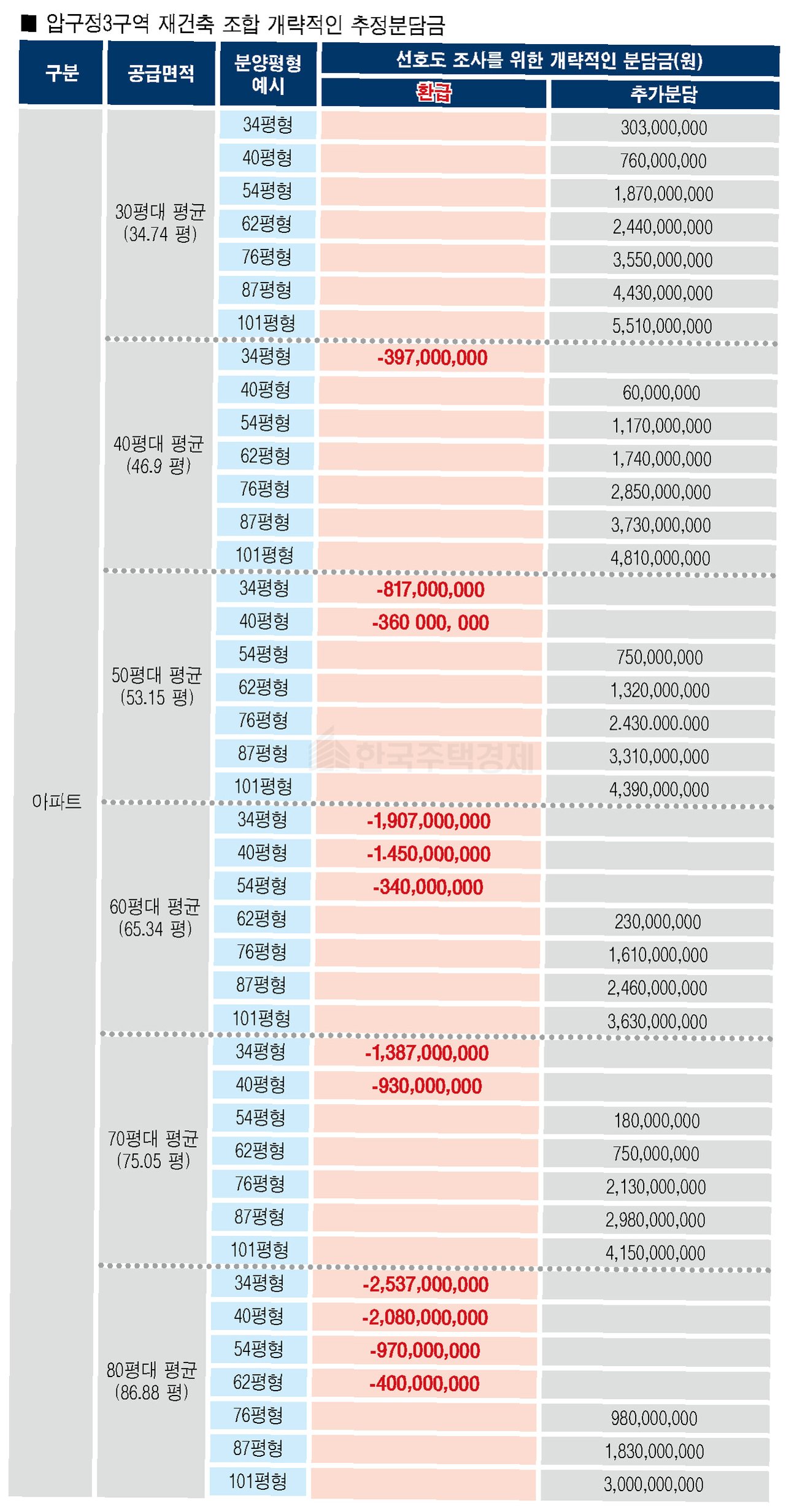 한 예로 서울 강남구 압구정2구역 재건축 사업의 추정 분담금이 1년 만에 크게 상승했다고 합니다.