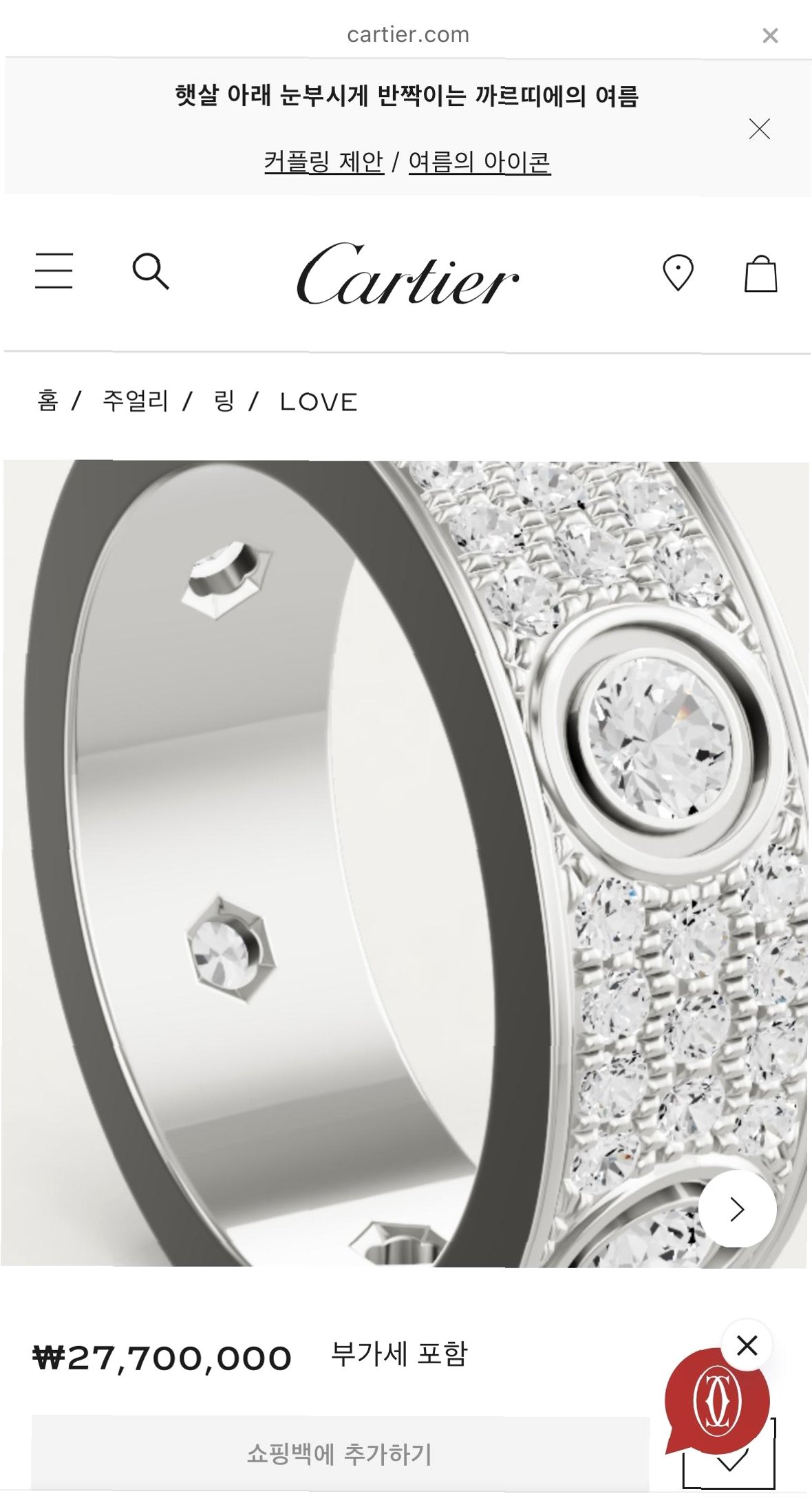 해당 반지는 까르띠에의 인기 모델 중 하나로, 전 축구선수 박지성과 SBS 전 아나운서 김민지 부부의 결혼반지로 유명하다. 까르띠에는 올해 총 세 차례 가격 인상에 나서면서 현재 2770만원에 해당 모델을 판매 중이다. 5년 만에 1000만원 가까이 오른 것이다.