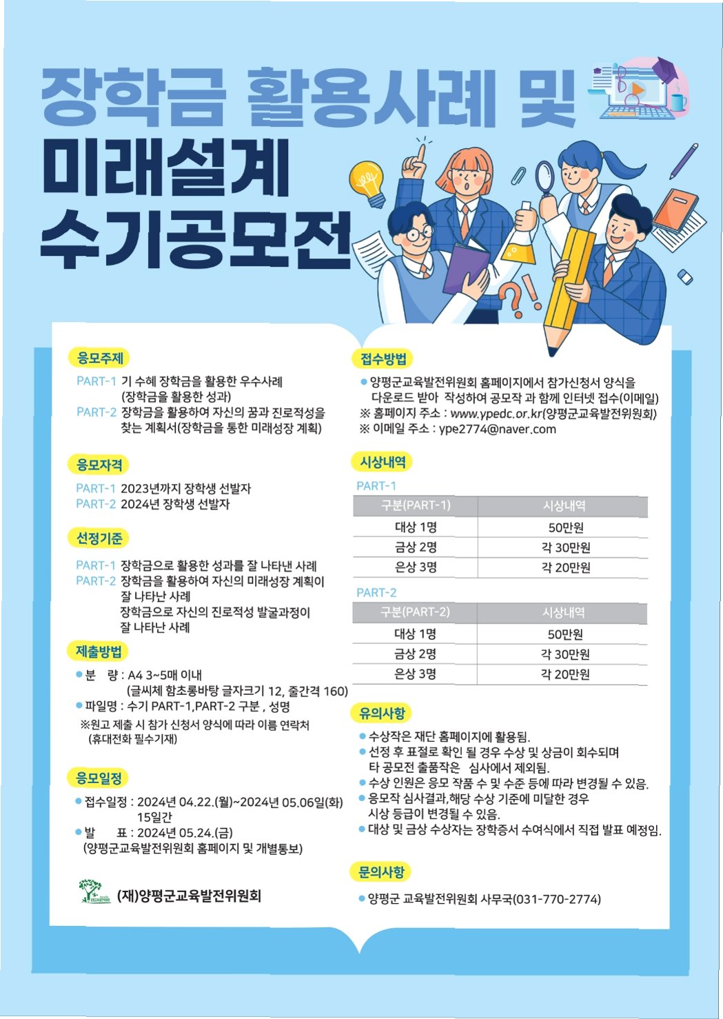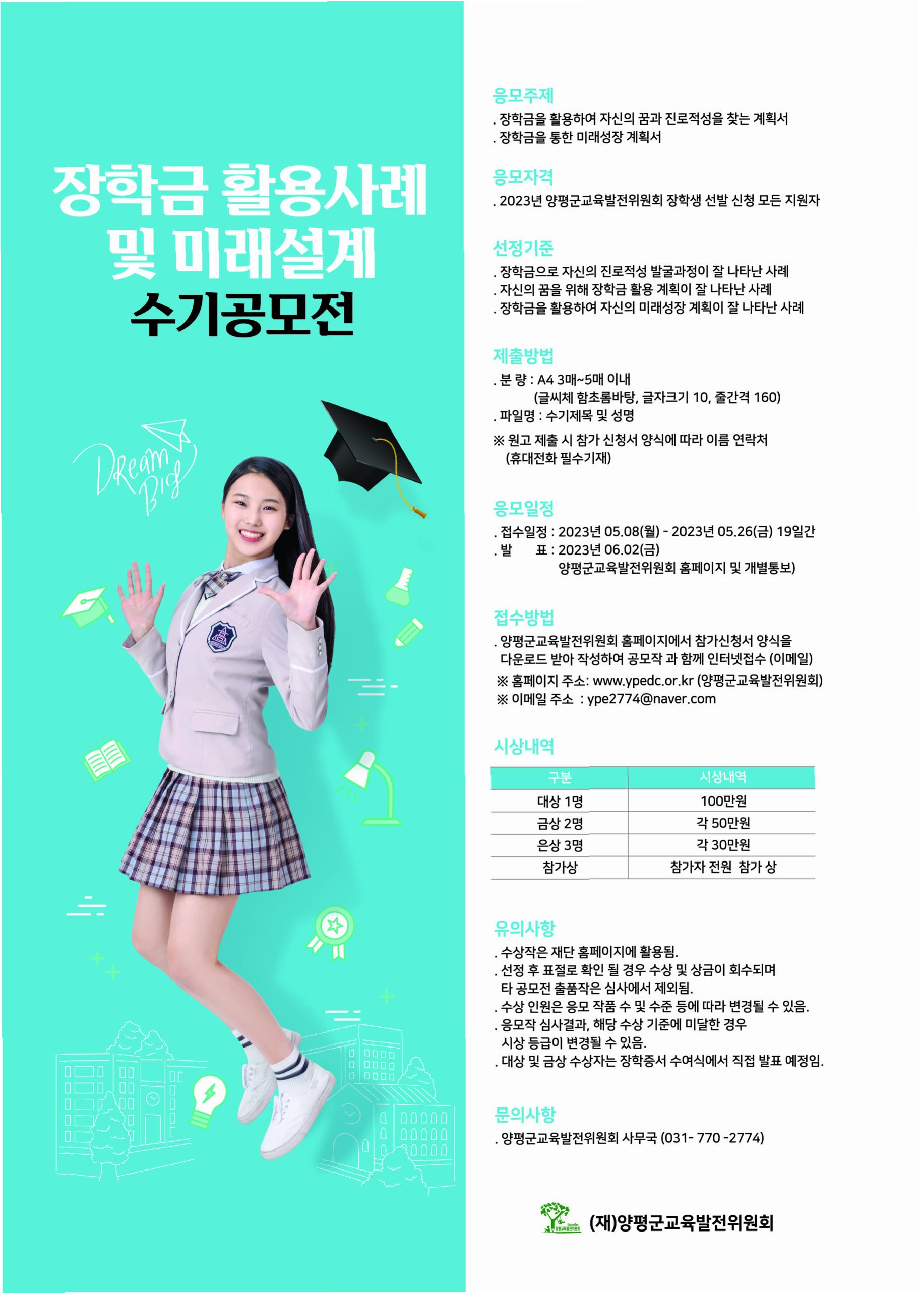 4. 미래를 위한 투자: 장학금은 여러분의 꿈을 이루기 위한 소중한 투자이며, 더 나아가 사회에 기여할 수 있는 인재로 성장하는 밑거름이 됩니다.