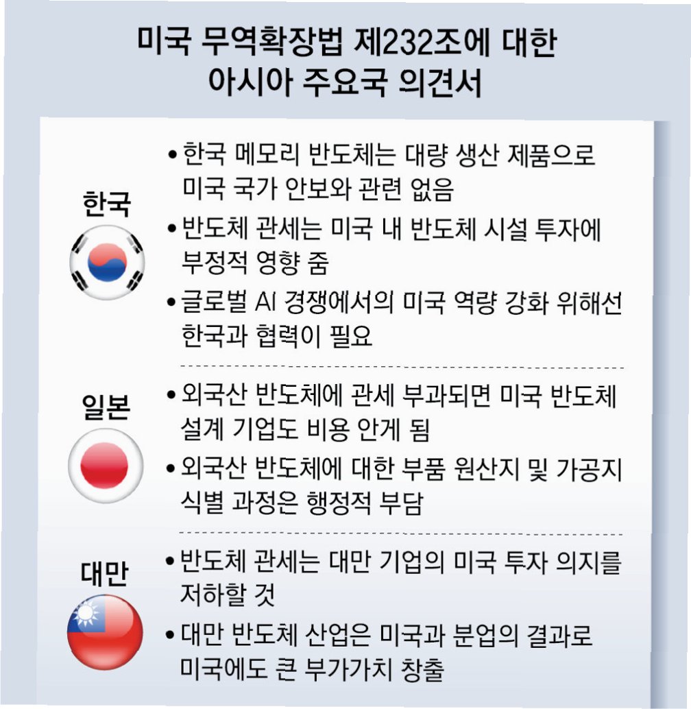 미국, K반도체 압박 수위 높이나? 관세 폭탄 현실화 가능성
