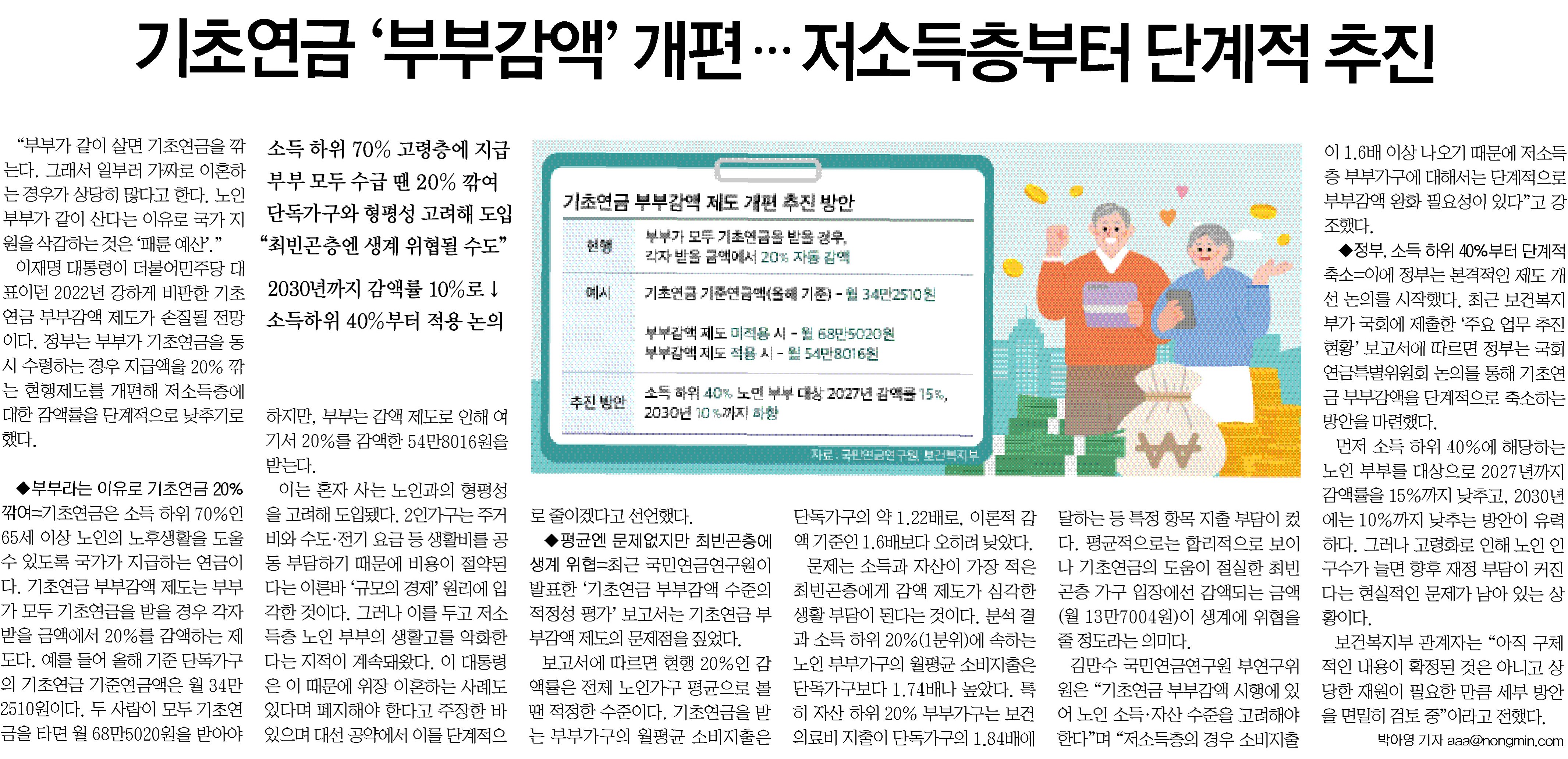 A.취약 계층을 위한 추가적인 논의와 지원이 필요합니다. 저소득·저자산 부부 가구에 대한 맞춤형 지원 방안 마련을 통해, 기초연금이 실질적인 공공 부조 역할을 수행할 수 있도록 해야 합니다.