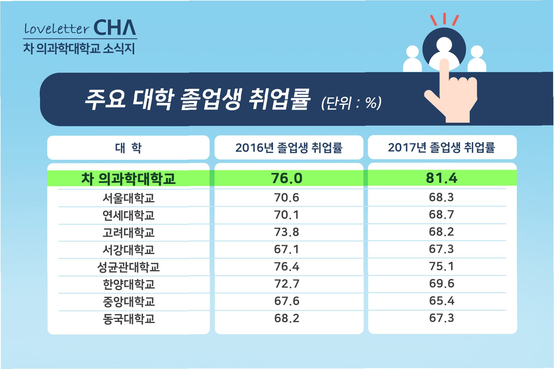 학교 유형별 취업률: 대학원 강세, 일반대 감소