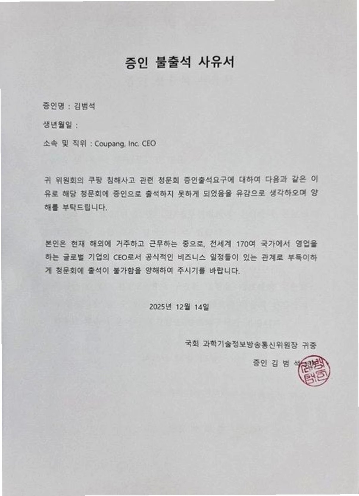 Q.김범석 대표가 청문회에 출석하지 않으면 어떻게 되나요?
