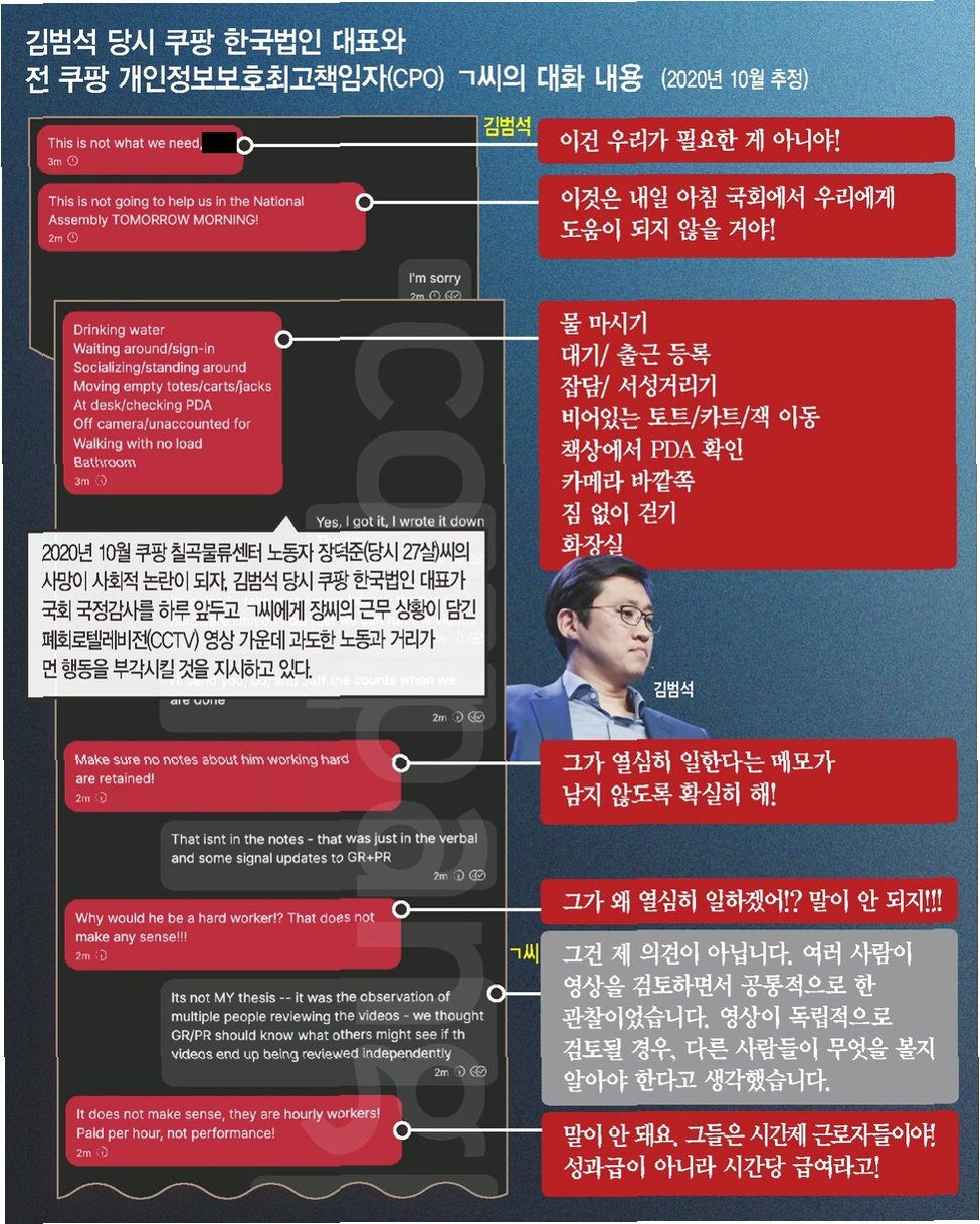 충격적인 메신저 대화 공개: 쿠팡 김범석, 과로사 축소 지시?