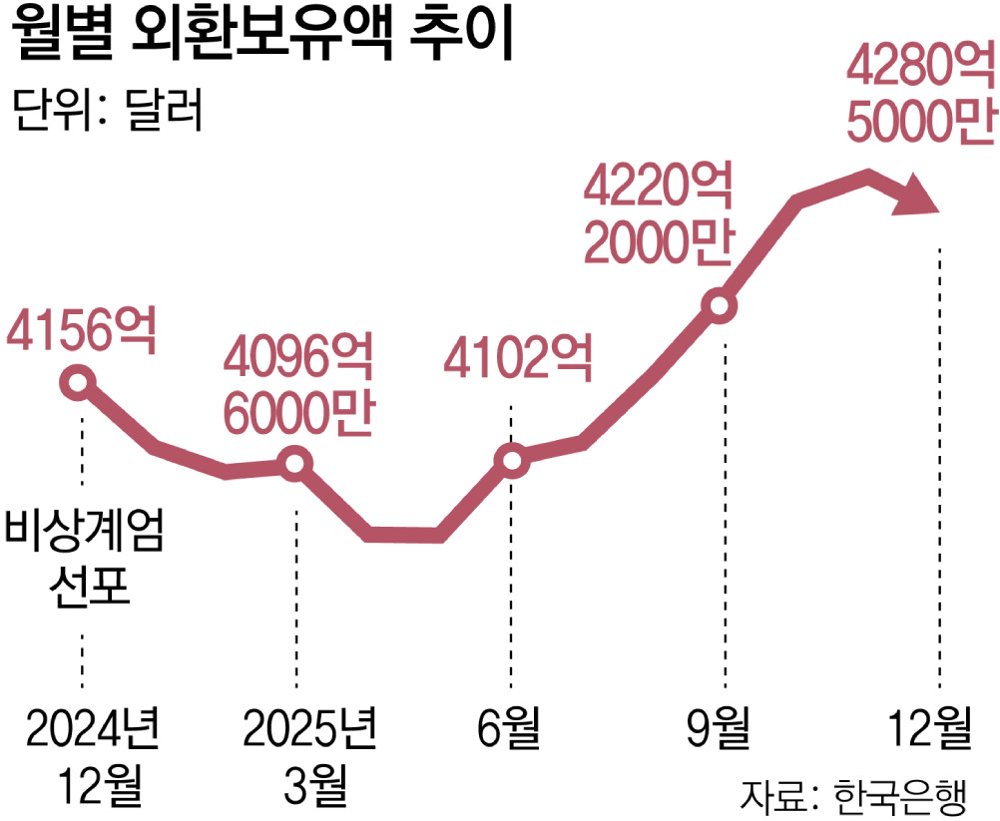 지난달 우리나라 외환보유액이 39억 7천만 달러 감소하며 4,236억 6천만 달러를 기록했습니다. 이는 2025년 4월 이후 11개월 만에 가장 큰 감소 폭으로, 달러 강세와 환율 변동성 관리 등 복합적인 요인이 작용한 결과입니다. 당시 미국 상호관세 발표 등으로 원/달러 환율이 급등하자 외환 당국이 환율 방어에 적극적으로 나서면서 외환보유액이 크게 줄어든 바 있습니다.