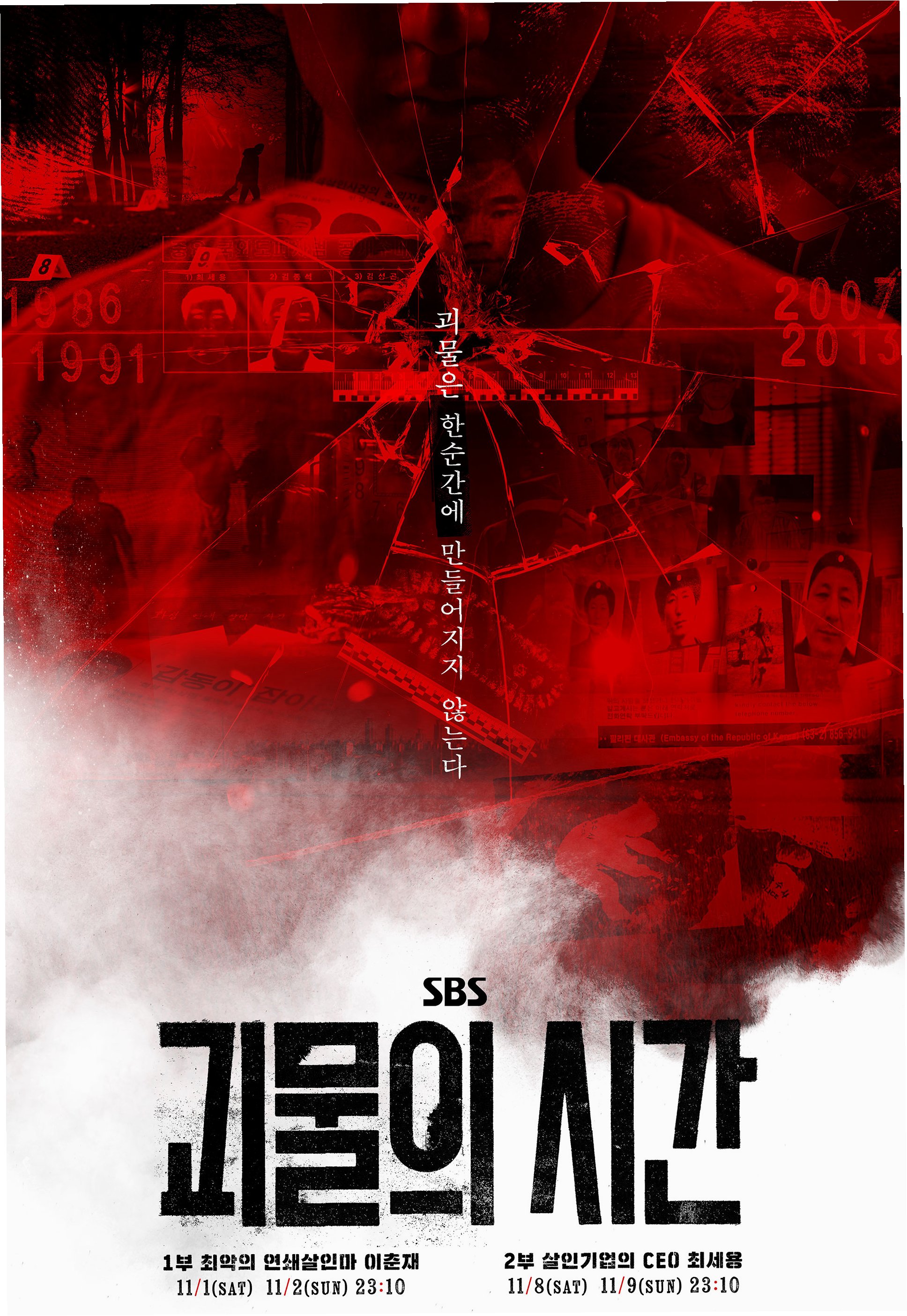 A.이춘재 연쇄살인 2부작은 11월 1일과 2일 오후 11시 10분, 살인기업 CEO 최세용 2부작은 11월 8일과 9일 오후 11시 10분에 방송됩니다.