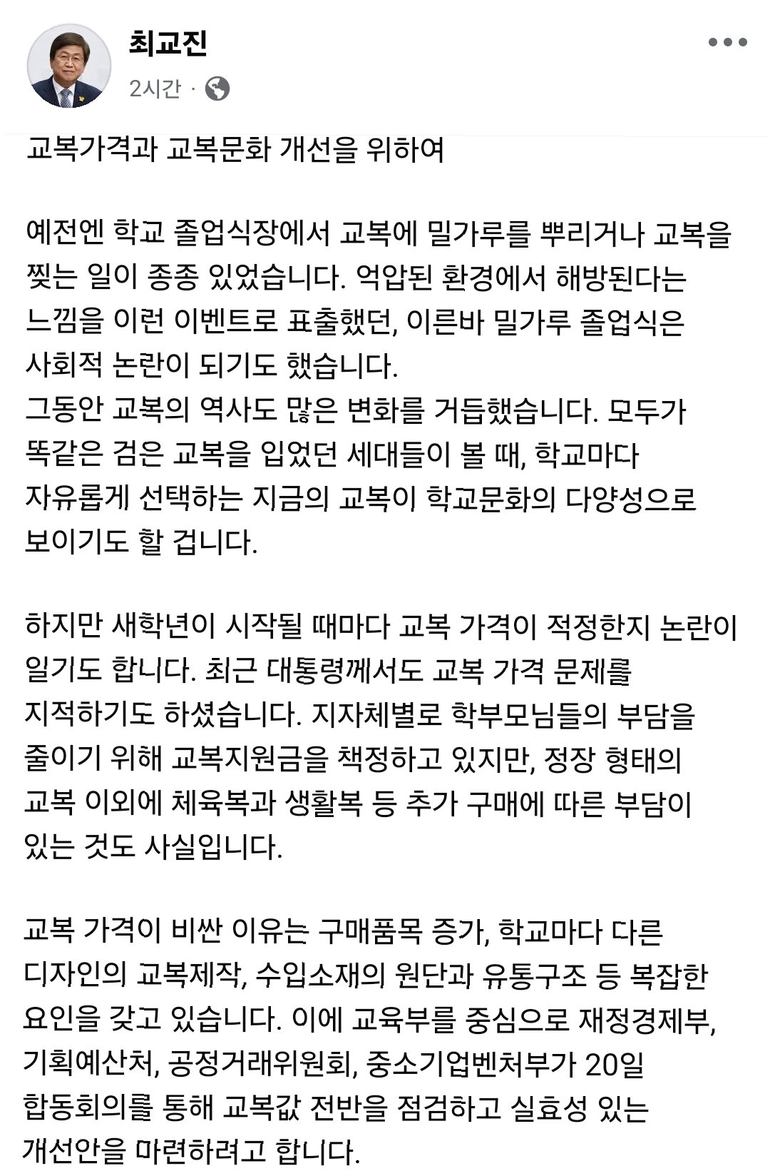 교복값 부담, 학부모들의 한숨이재명 대통령이 비싼 교복값을 지적한 지 8일 만에 정부가 첫 합동회의를 열었습니다. 교복값이 60만원을 넘는 곳도 적지 않은데, 지원 방식도 지역마다 제각각이라 학부모의 부담이 크다는 것입니다. 한 학부모는 "1년에 몇 번 안 입는 옷을 이 돈 주고 사야 되나"라며 정장 교복 구매에 대한 부담감을 토로했습니다. 체육복 등 추가 구매 부담도 만만치 않아 경제적 어려움을 호소하는 목소리가 높습니다. 천차만별 교복값, 최대 10배 차이지난해 전국 중고등학교의 교복값은 평균 31만원대를 기록했지만, 체육복 등을 제외한 동하복만 따져도 60만원을 훌쩍 넘는 곳이 많았습니다. 학교별로는 최대 10배 이상 차이가 나기도 합니다. 교복값은 11년 전부터 각 교육청이 매년 상한을 정하..