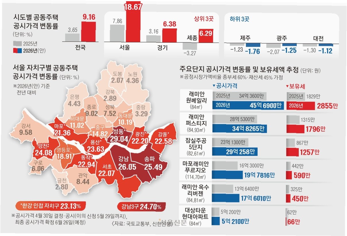 공시가격 급등, 서울 아파트 매물 2천 건 이상 증가올해 공동주택 공시가격이 서울 한강 벨트를 중심으로 크게 오른 가운데, 공시가격 발표 이틀 만에 서울 아파트 매물이 2000건 넘게 증가했습니다. 시장에서는 향후 강남권 고가 아파트를 중심으로 매물 출회가 가속화되고 가격 하방 압력이 거세질 수 있다는 전망이 나옵니다. 이는 공시가격 인상에 이어 공정시장가액 비율 조정, 세율 개편 등 보유세 부담을 가중할 수 있는 정책 변수들이 줄줄이 대기하고 있기 때문입니다. 부동산 빅데이터 업체 아실에 따르면, 공시가격안 발표 전날 대비 이틀 만에 서울 아파트 매물은 2.7% 늘어난 7만 8077건으로 집계되었습니다. 보유세 부담 가중, 하반기 세제 개편 변수 주목시장에서는 공시가격 급등에 따른 보유세 부담 확..